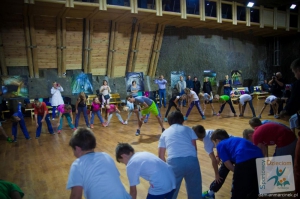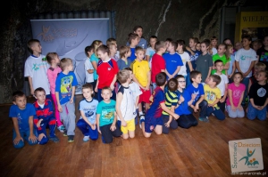 Zadziałała magia Mistrza i tym razem nikt nie narzekał na WF. Dzieci były zachwycone, gdy wspólnie z Kamilem rozgrzewały się, rozciągały, wykonywały ćwiczenia na koordynację i utrzymywanie równowagi. Nie zabrakło oczywiście imitacji lądowania telemarkiem. A na koniec wszyscy przyjmując pozycję dojazdową kilkukrotnie wybijali się w górę z okrzykiem: POLSKA!!!